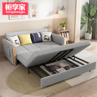 欧梵森 北欧轻奢沙发床客厅多功能折叠两用可伸缩现代简约双人储物科技布小户型组合布艺沙发简欧风格坐卧家具家装 1.52米外径【多色可选,拍下请备注】 科技布海绵款