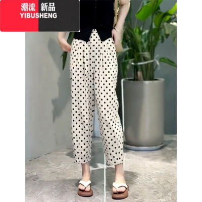 YIBUSHENG休闲裤女2024年季新款宽松高腰抖抖裤显瘦冰丝波点束脚哈伦裤潮